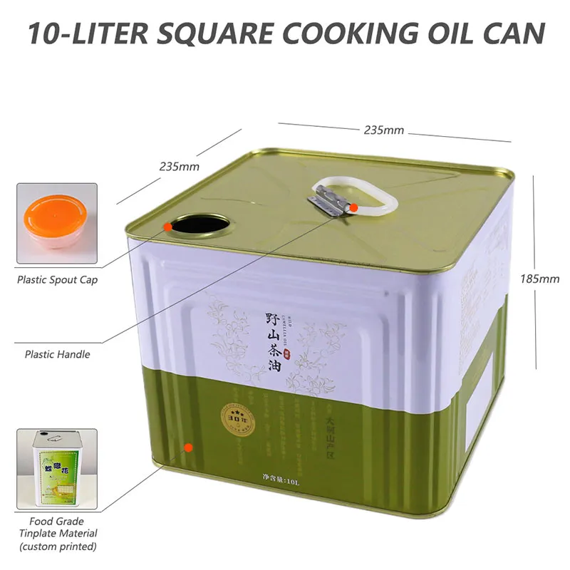 10-литровая квадратная жестяная банка для оливкового масла с гибким носиком